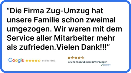 Ja, alle unsere Umzüge sind versichert. Ihr Hab und Gut ist während des gesamten Umzugsprozesses geschützt. So können Sie beruhigt sein, dass alles sicher ankommt.